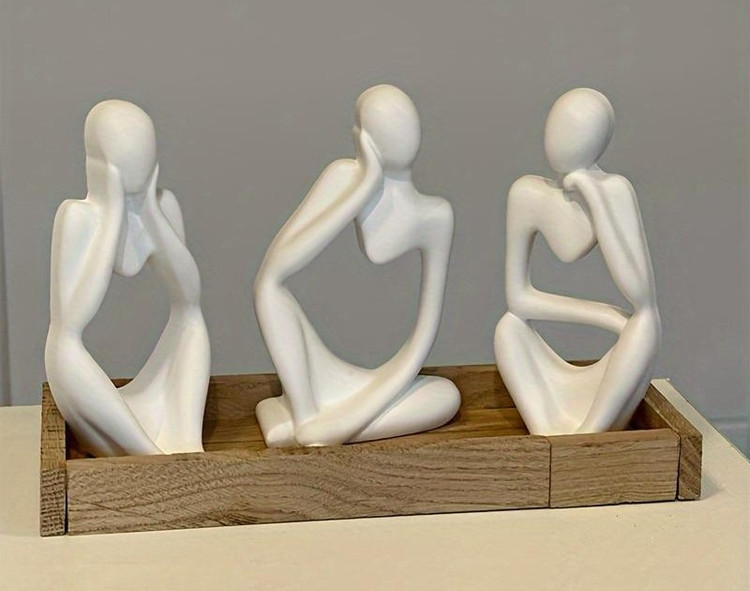 ست سه عددی مجسمه تفکر با کیفیت بسیار بالا ، با استفاده از پودر چهار جزیی ساخته شده است ، این پودر نسبت به پودر های معمولی هنری مقاومت بالاتری دارد .