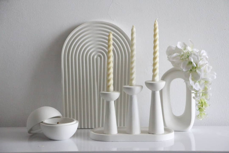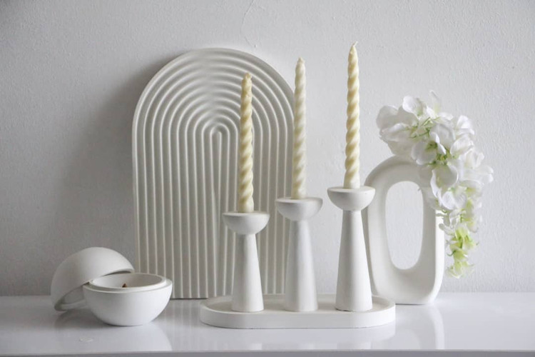 گلدونی که عنصر خاک رو وارد فضا میکنه، جاعودی که با دودش هوا رو به جریان میندازه، و شمعدونهایی که با فرمهاشون حس پایداری و آرامش رو القا میکنن.