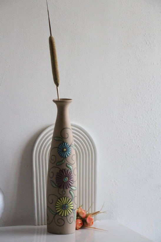 گلدان سفالی لعابی با قد چهل سانتیمتر ، انتخابی عالی برای آنانکه عاشق هنر هستند.
