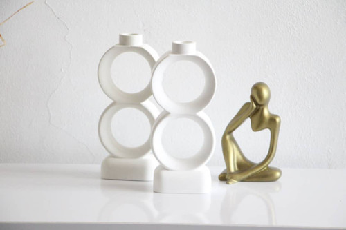 ست دو عددی شمعدان چاق و لاغر سنگ مصنوعی