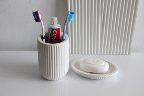 ست دو تکه ی بهداشتی جا صابونی و جای مسواک و خمیر دندان سنگ مصنوعی