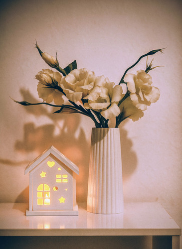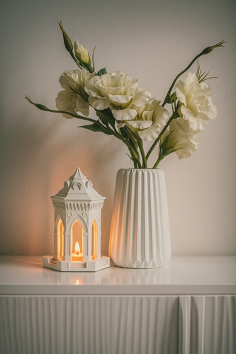ست چراغ خواب طرح کلبه و گلدان شیار دار